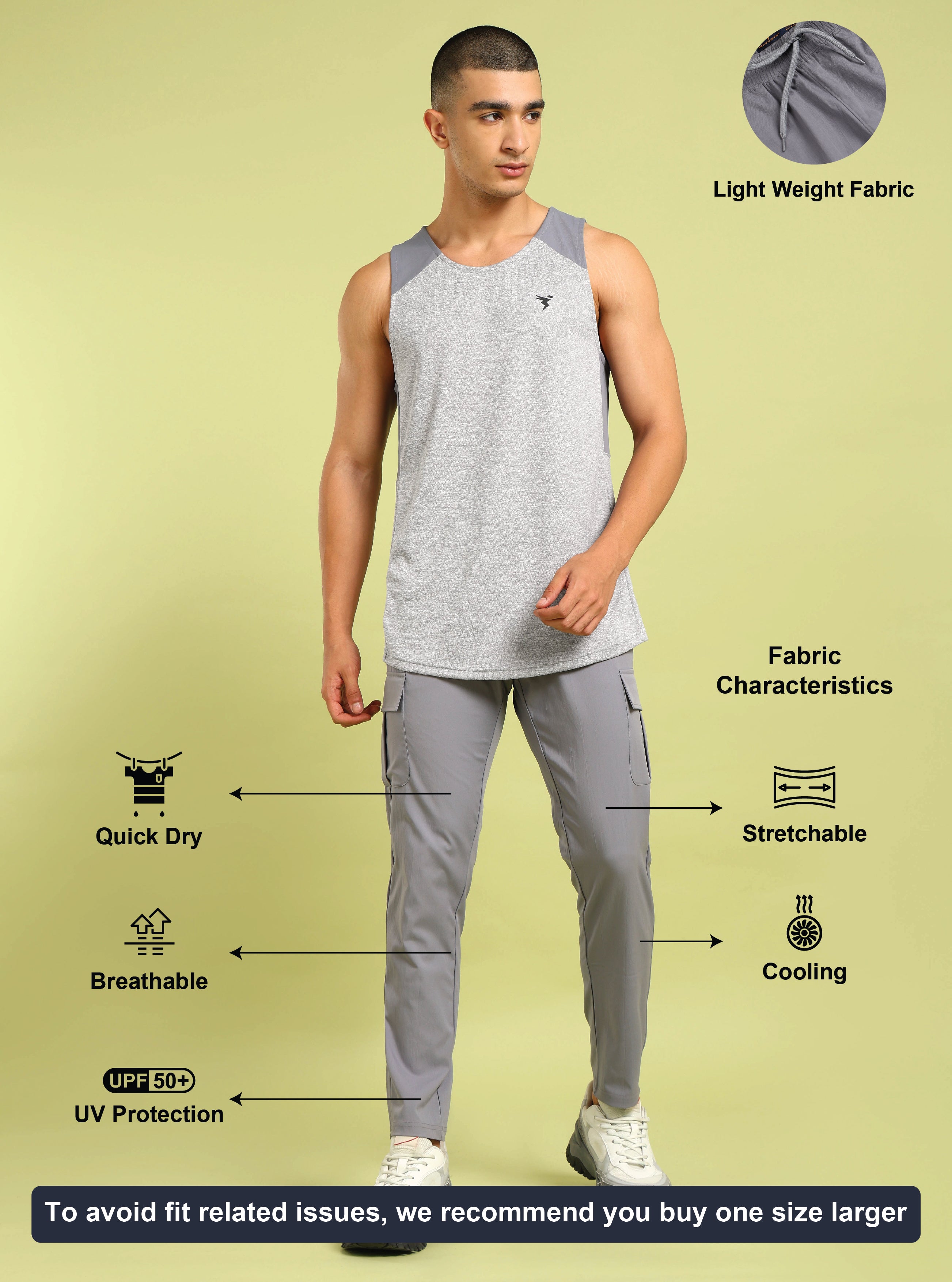 Men Solid Relax Fit Sports Cargo Trackpants with TS FLEXI