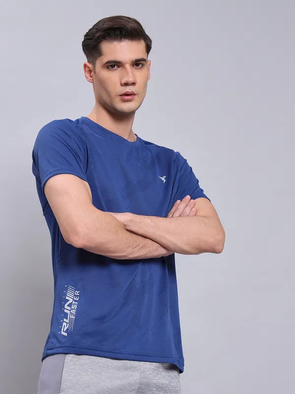 Men Self Design Slim Fit Crew Neck T-shirt with VENTMESH