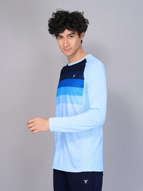 Men Geometric Slim Fit Crew Neck T-shirt with TECHNO COOL