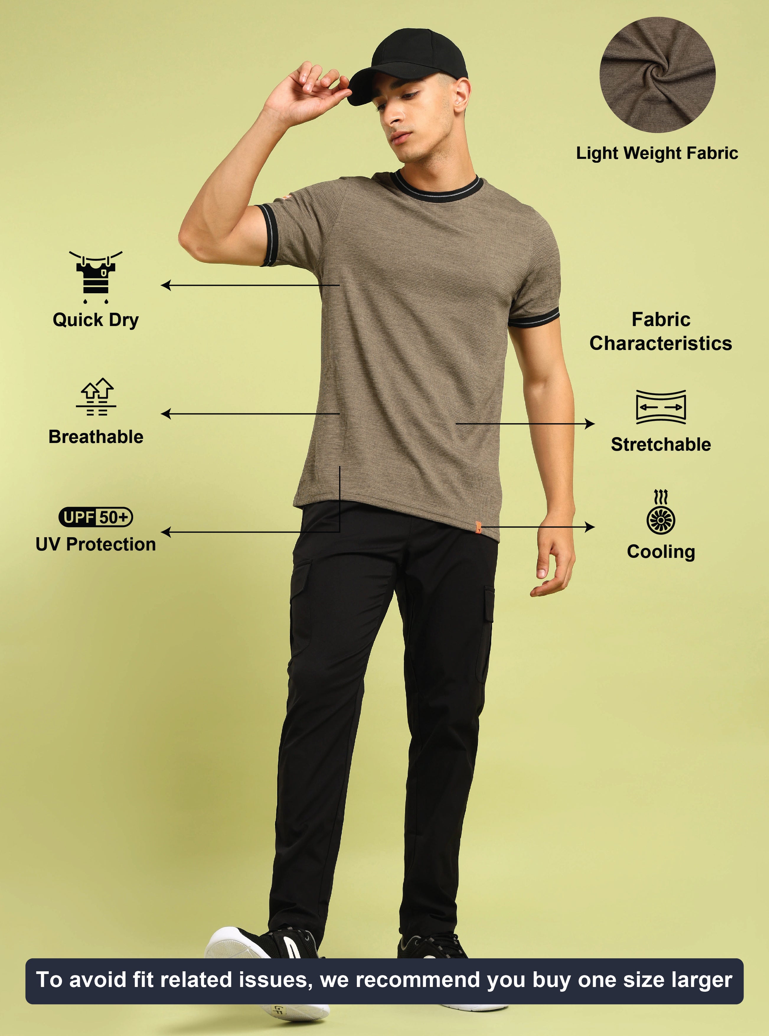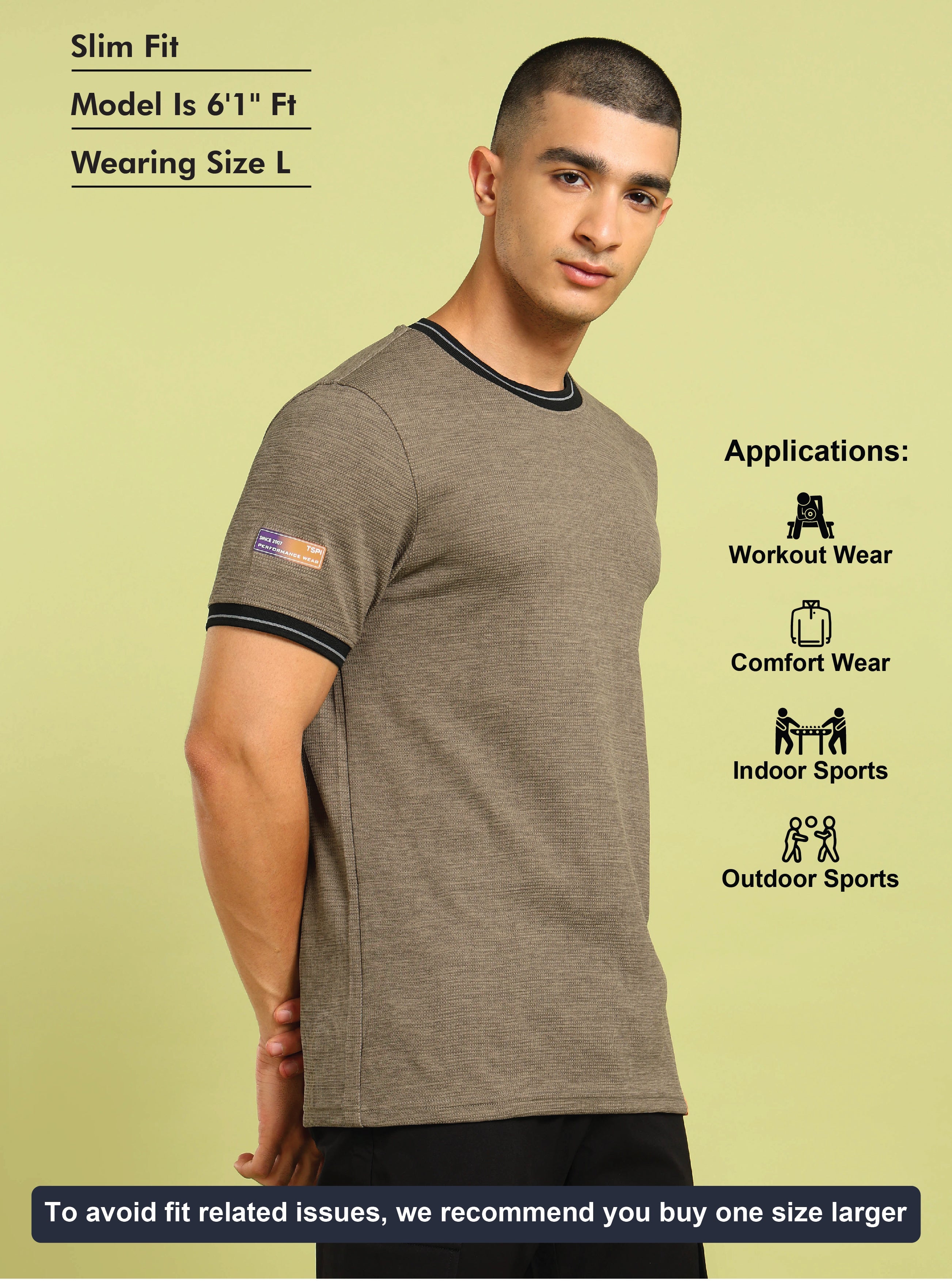 Men Cubic Melange Slim Fit Round Neck Sports T-shirt with DOUBLE COOL