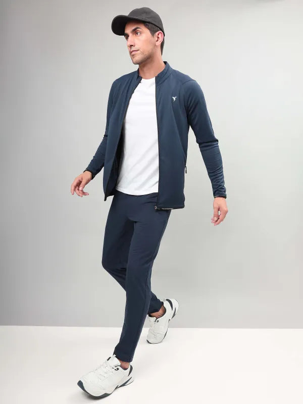 Men Solid Slim Fit Mock Neck Jacket with TECHNO DRY