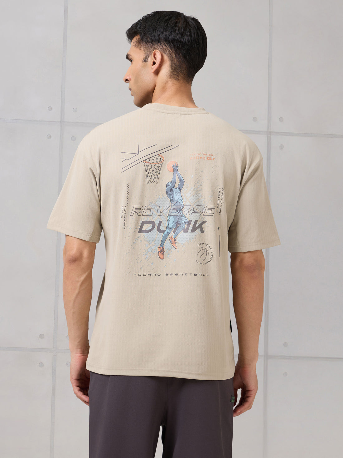 Men Round Neck Back Printed Active Out Regular Fit T-Shirt with ELASTOPLUS