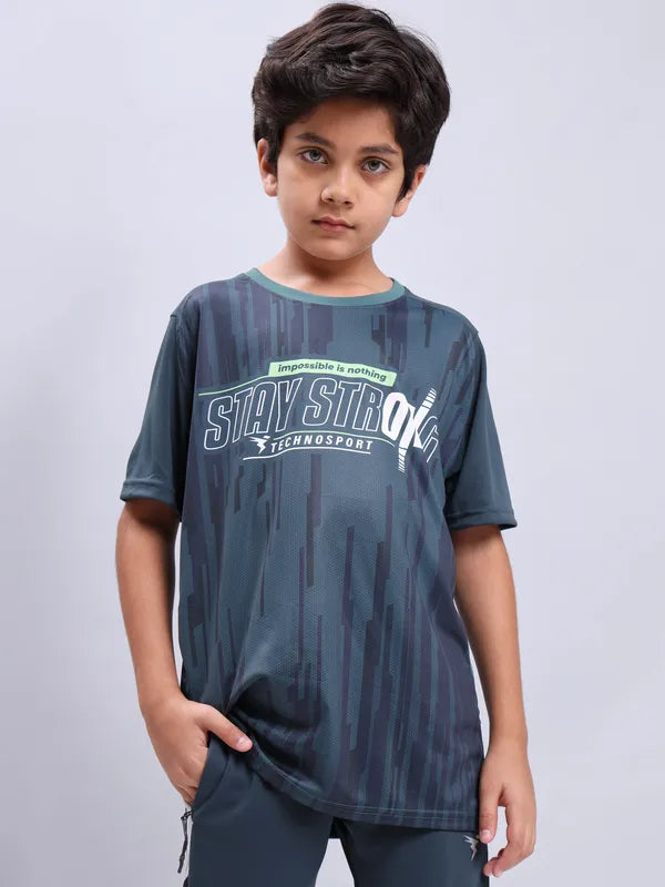 Boys Printed Slim Fit Crew Neck T-shirt with TECHNO COOL+