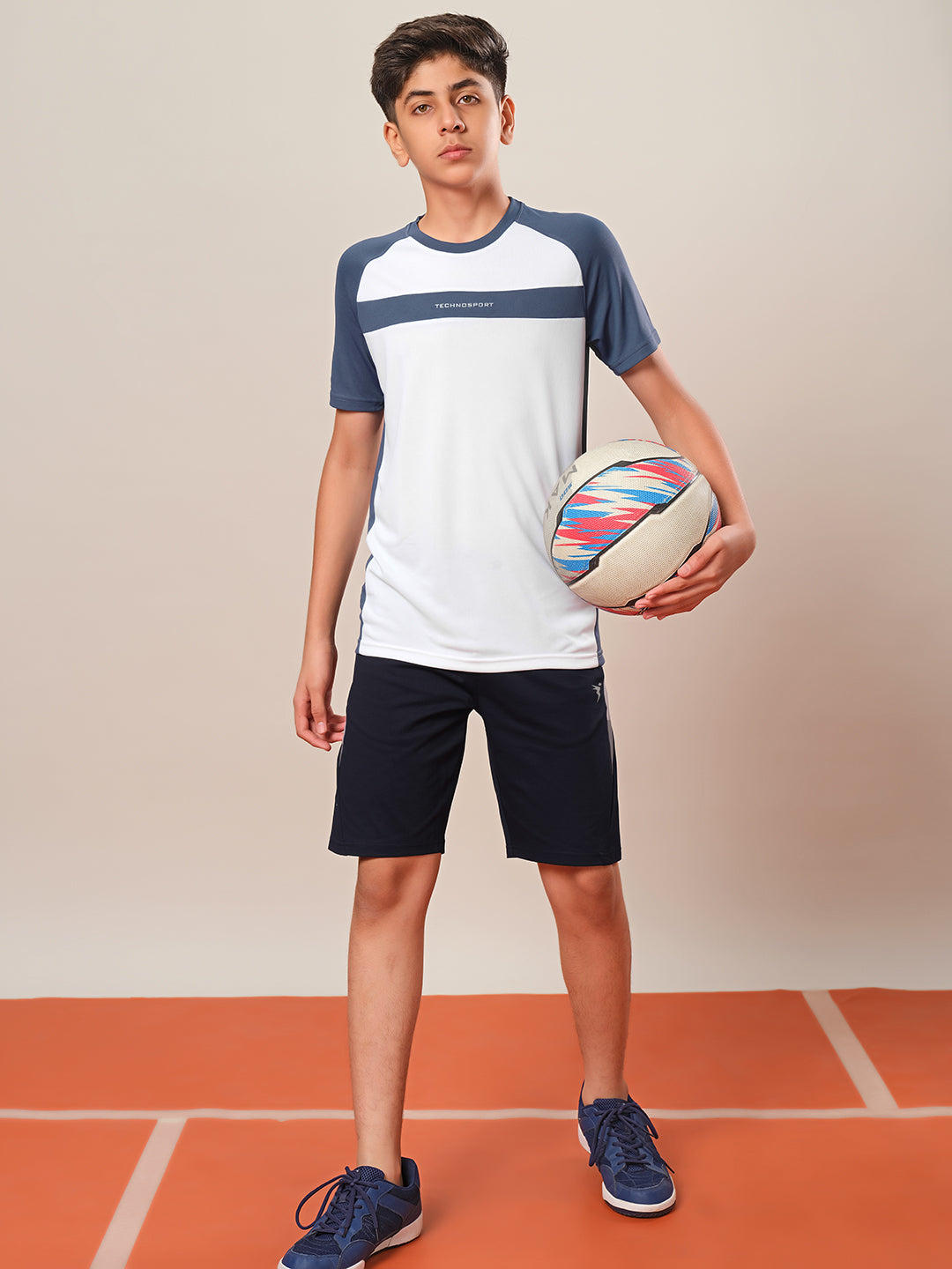 Boys Colorblock Slim Fit Round Neck Sports T-shirt with TECHNO DRY