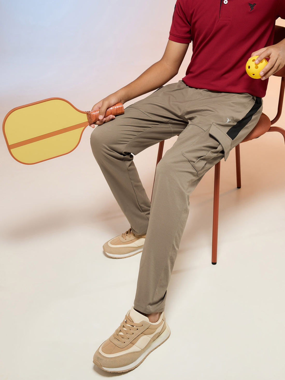 Boys Colorblock Straight Fit Sports Cargo Trackpants with TS FLEXI