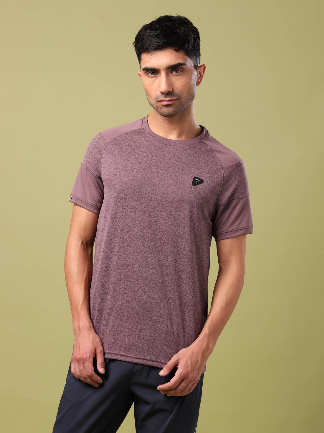 Men Cubic Melange Slim Fit Round Neck Sports T-shirt with DOUBLE COOL