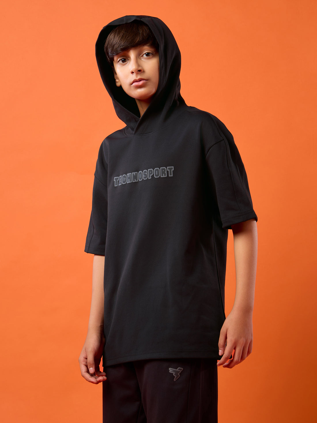 Boys Back Printed Slim Fit Hooded Sports Sweatshirt with TECHNO WARM+