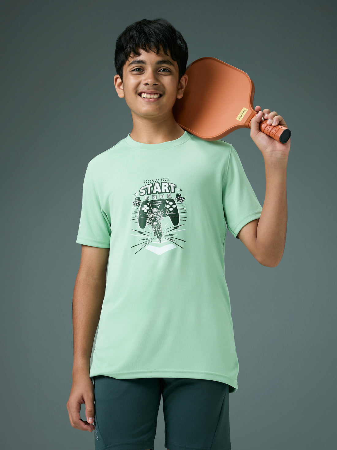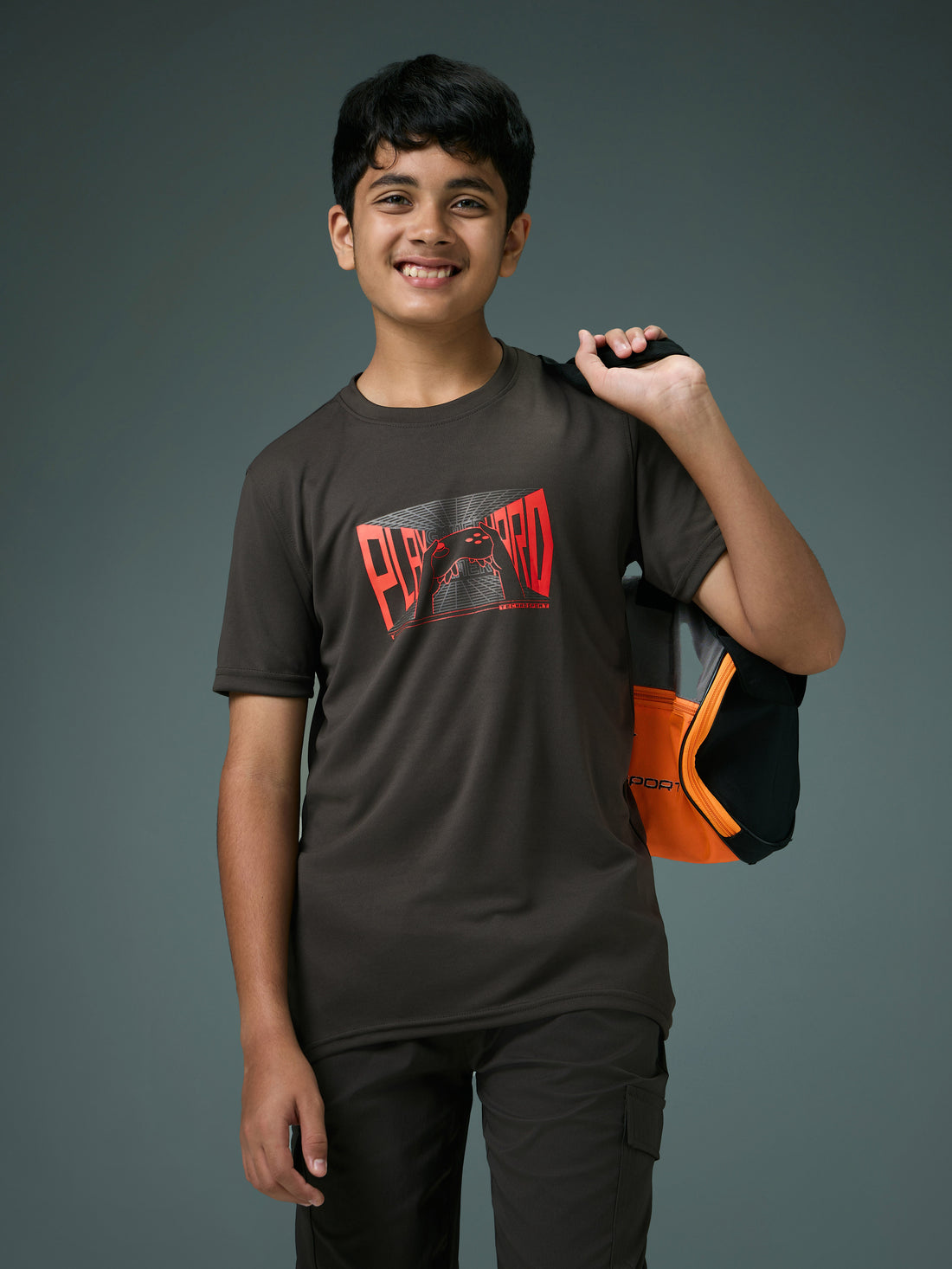 Boys Printed Slim Fit Round Neck Sports T-shirt with TECHNOCOOL+