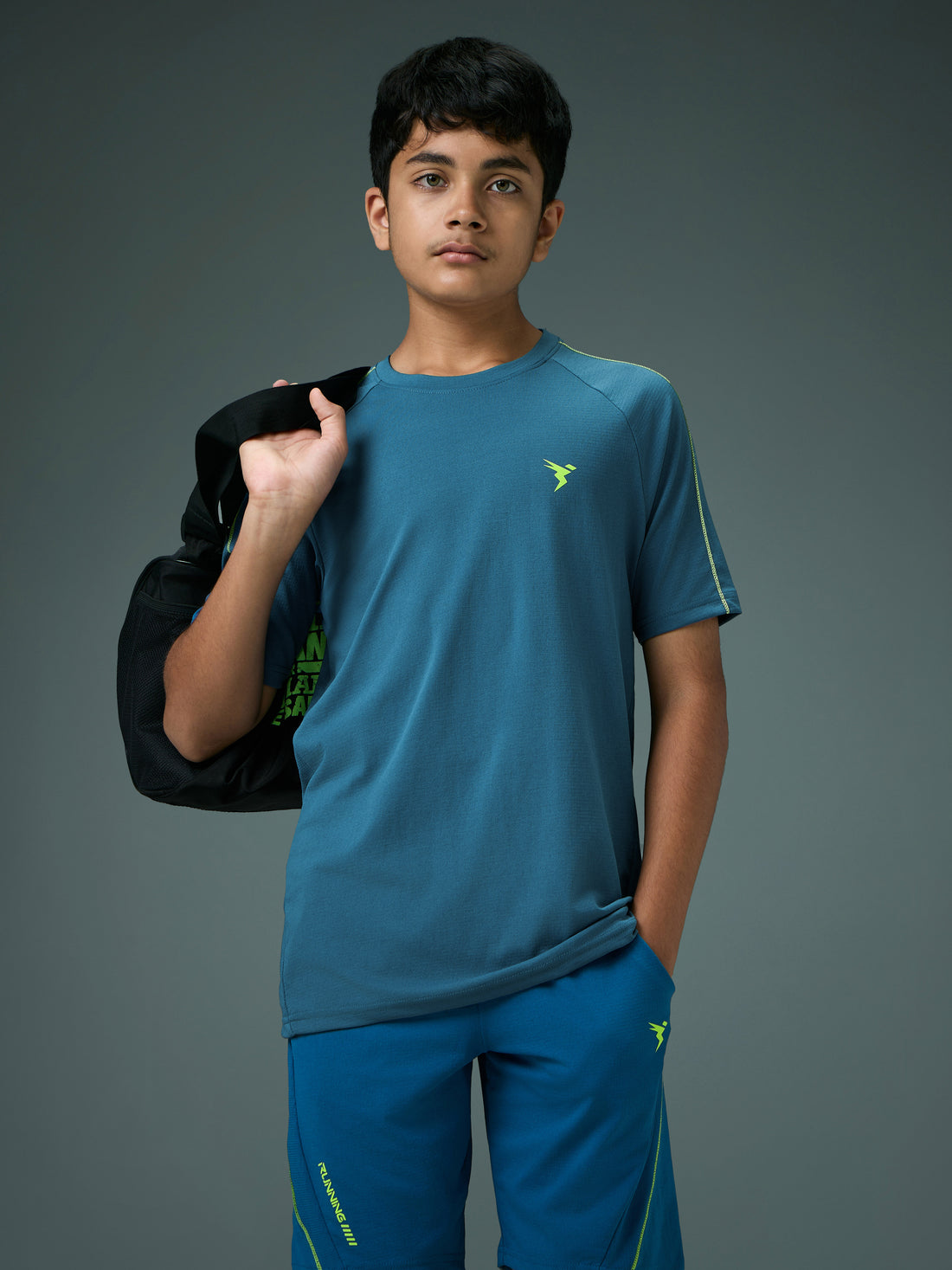 Boys Solid Slim Fit Round Neck Sports T-shirt with COTFLEX