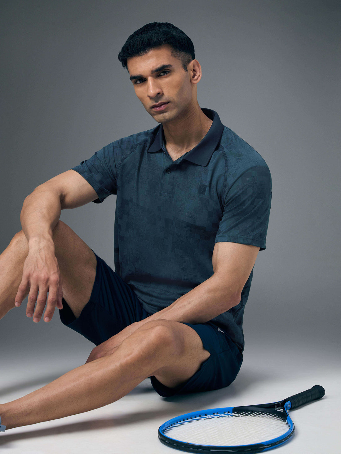 Men Self Design Slim Fit Polo T-shirt with MATPIQ