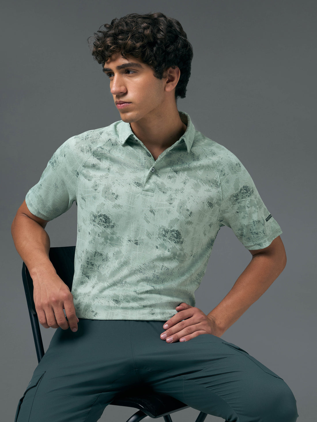 Men Printed Slim Fit Polo T-shirt with TECHNO COOL+