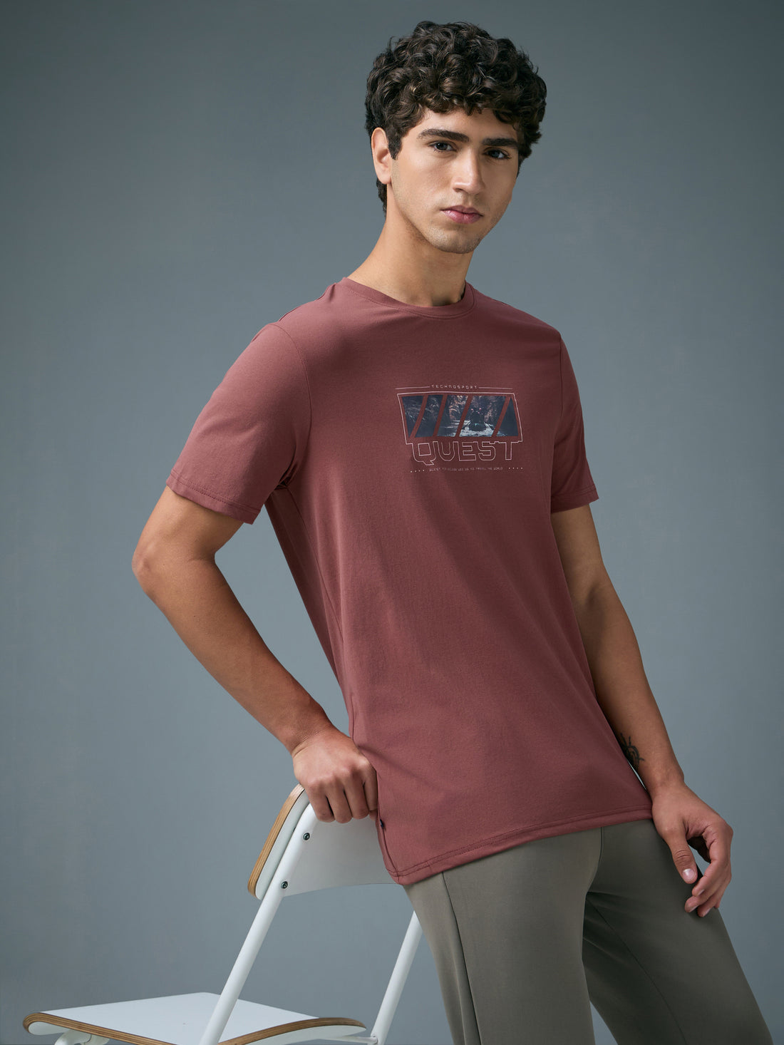 Men Printed Regular Fit Crew Neck T-shirt with TECHNO COOL+