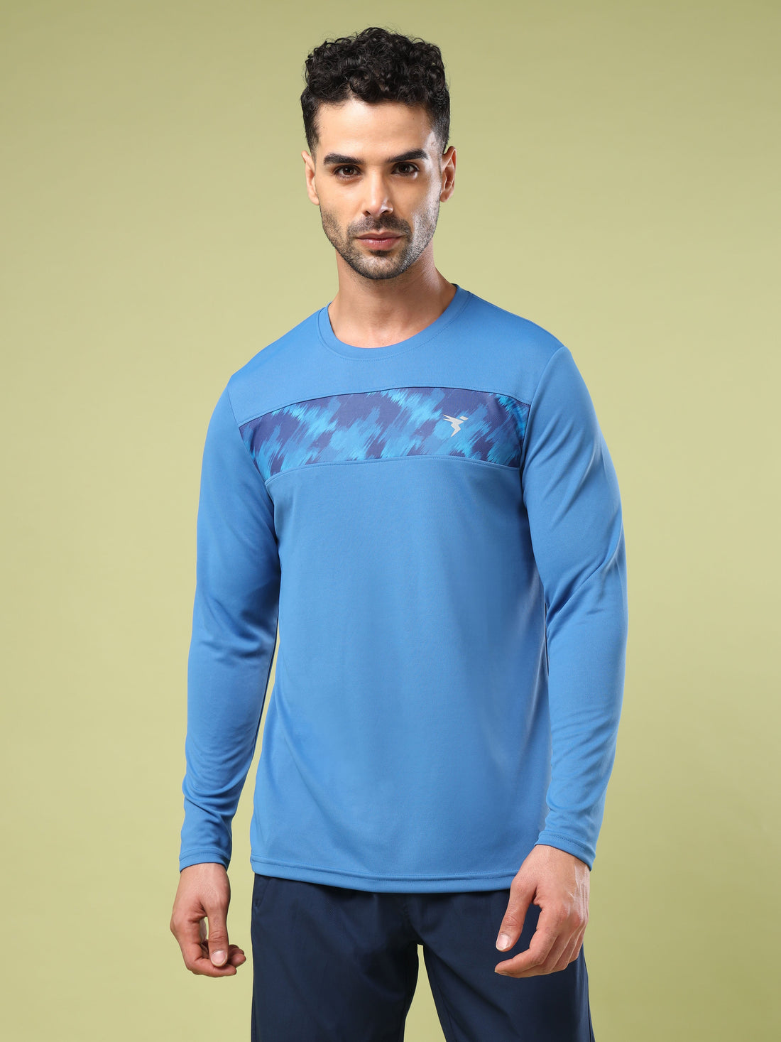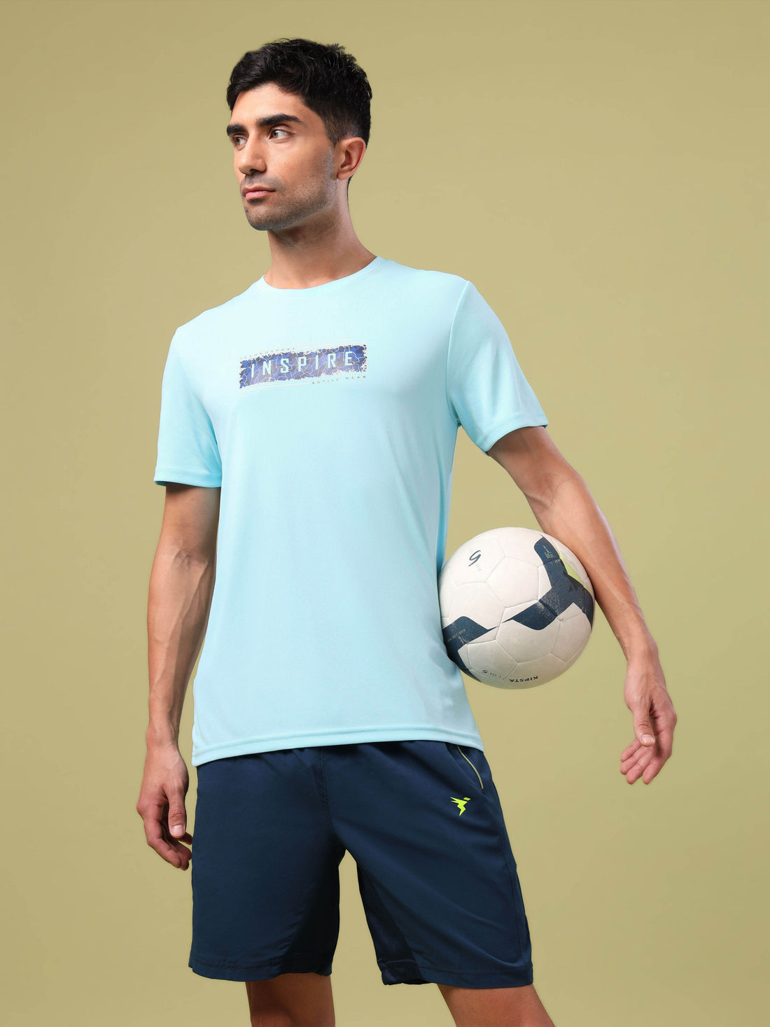 Men Printed Slim Fit Round Neck Sports T-shirt with TECHNO COOL+