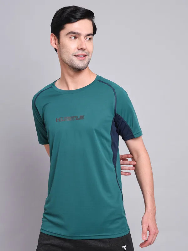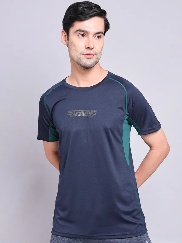 Men Round Neck Typography Printed Active Out Slim Fit T-Shirt with ELASTOPLUS
