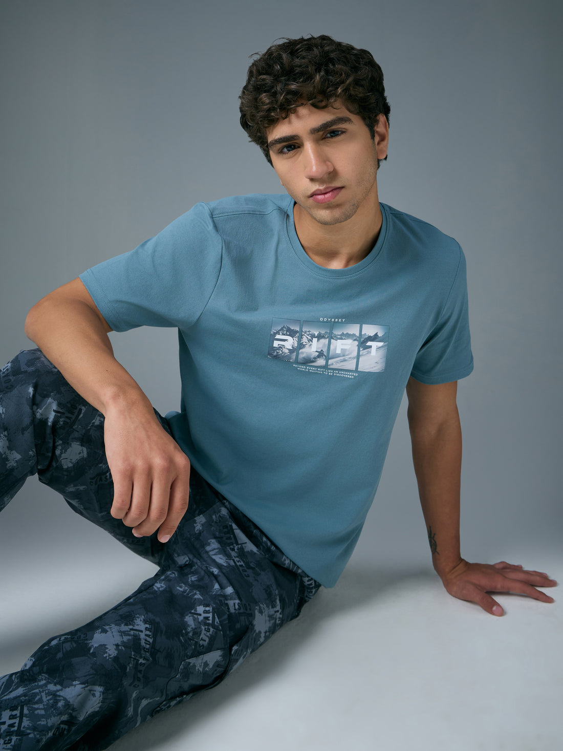 Men Printed Slim Fit Round Neck T-shirt with COTFLEX