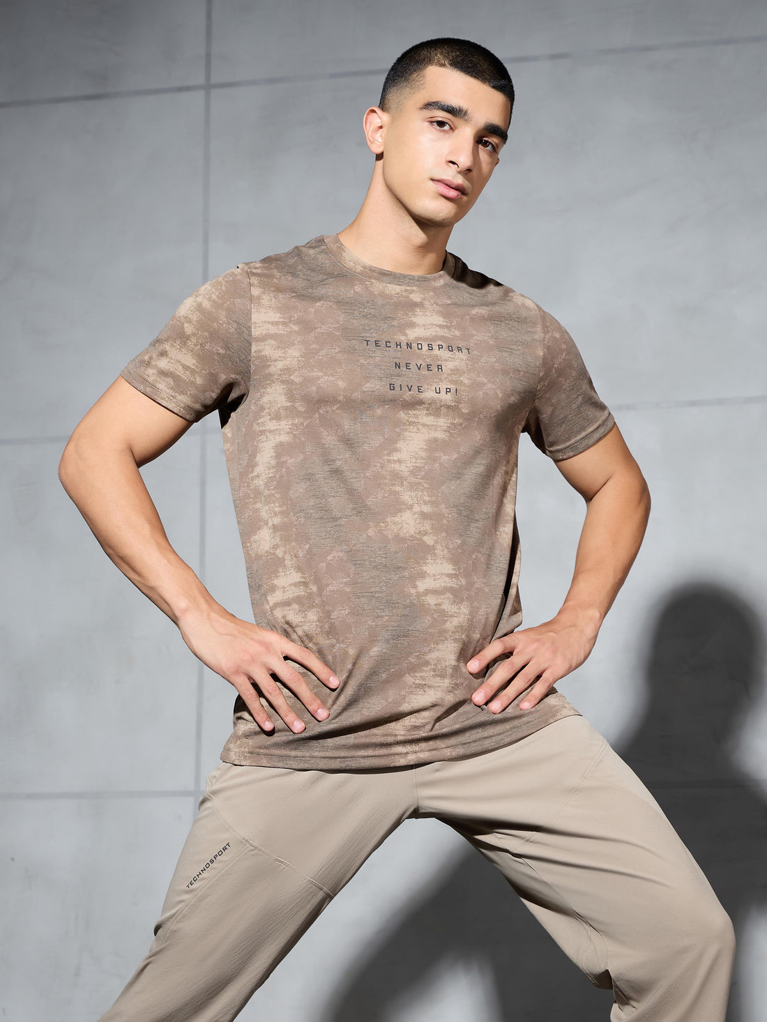Men Printed Regular Fit Crew Neck T-shirt with TECHNO COOL+