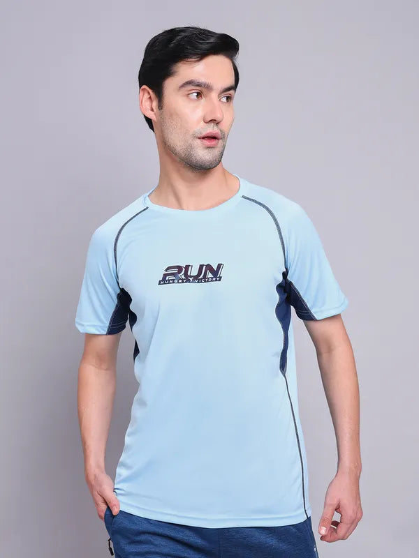 Men Round Neck Typography Printed Active Out Slim Fit T-Shirt with ELASTOPLUS