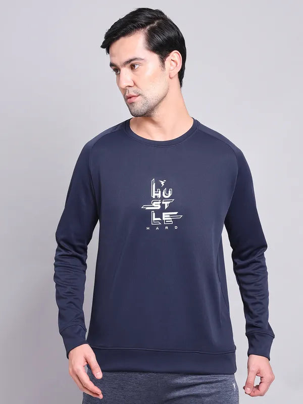 Men Printed Slim Fit Crew Neck Sweatshirt with TECHNO WARM+