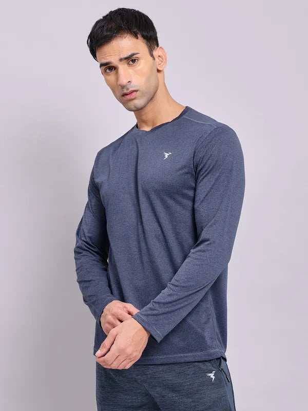 Men Melange Slim Fit Crew Neck T-shirt with DOUBLE COOL