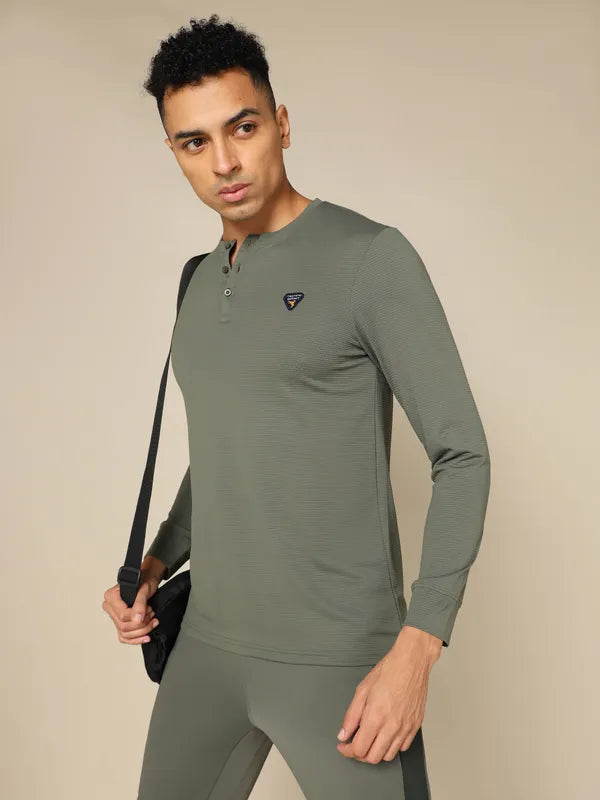 Men Self Design Slim Fit Henley Neck T-shirt with MATPIQ