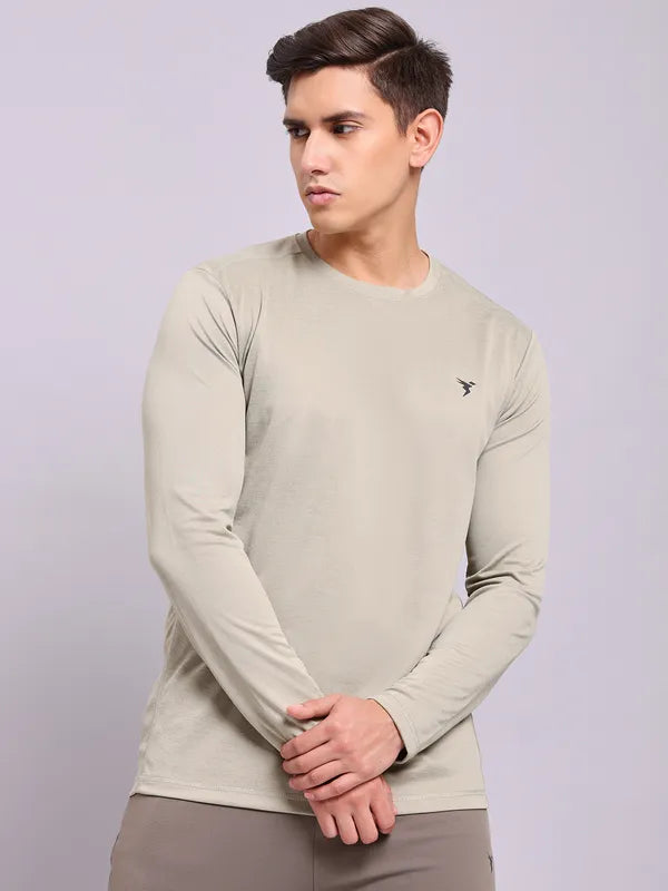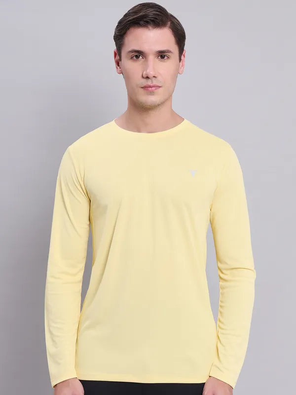 Men Solid Slim Fit Crew Neck T-shirt with TECHNO COOL+
