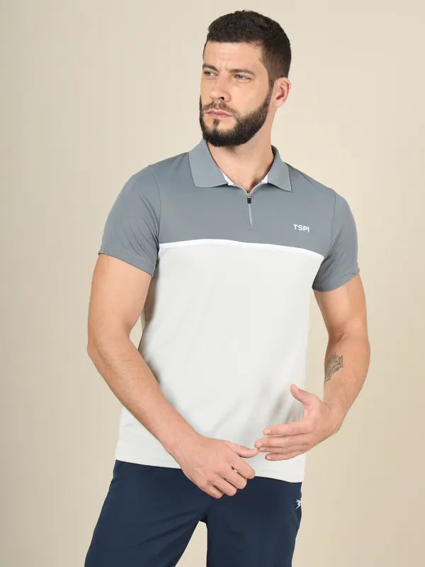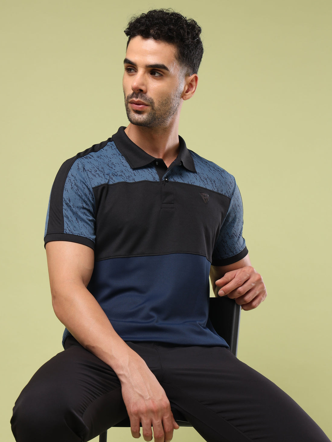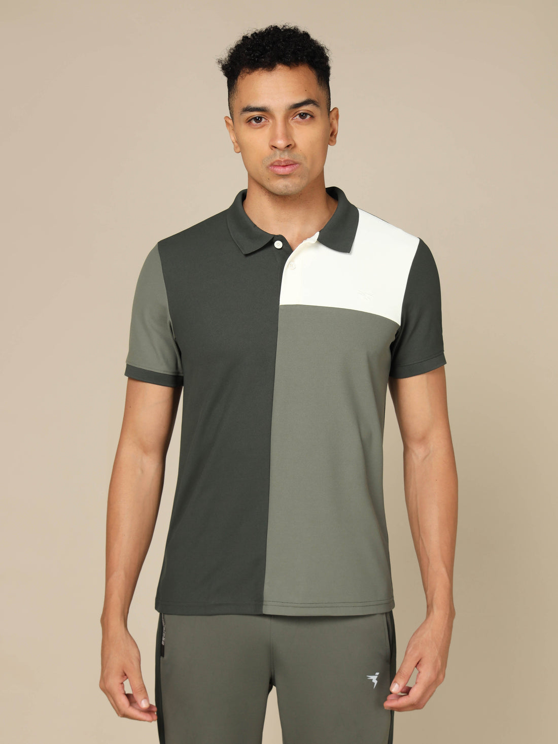 Men Colorblock Slim Fit Polo Sports T-shirt with DOUBLE COOL