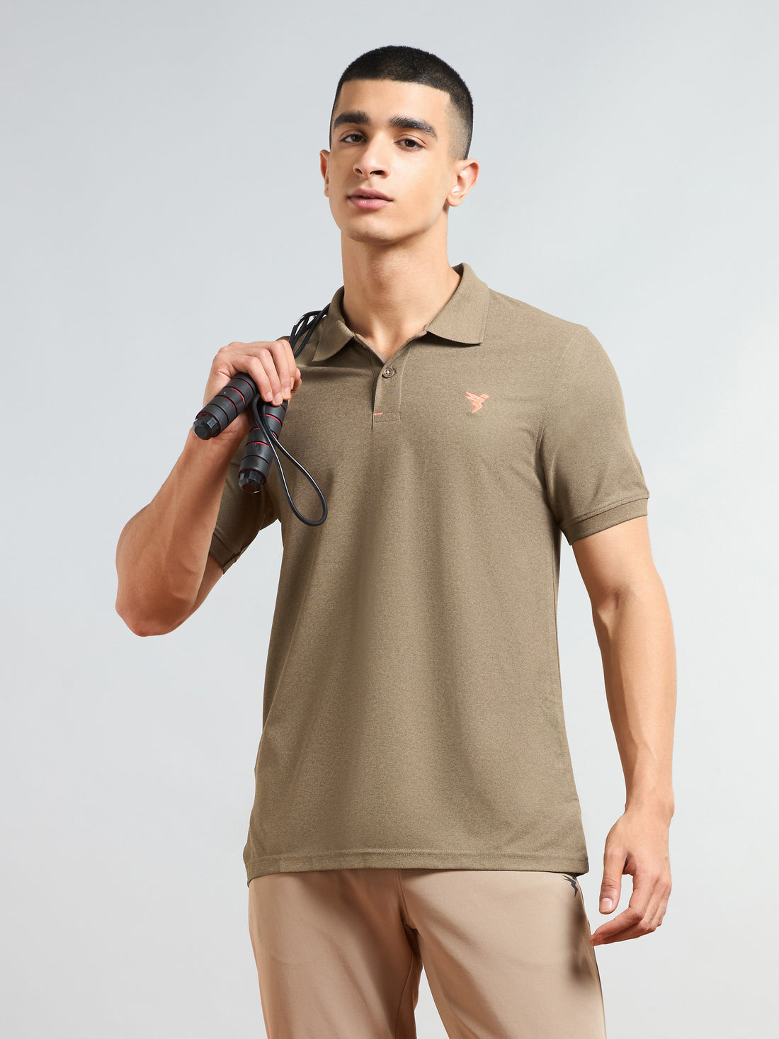 Men Melange Slim Fit Polo T-shirt with DOUBLE COOL