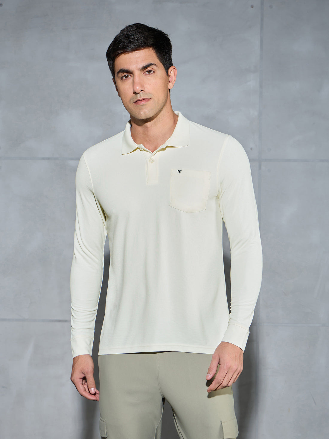Men Solid Slim Fit Polo T-shirt with ELASTO PLUS