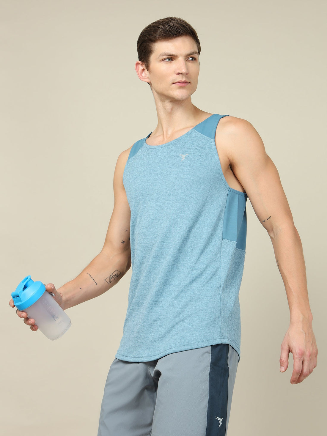 Men Melange Slim Fit Round Neck Sports Innerwear Vest with DOUBLE COOL
