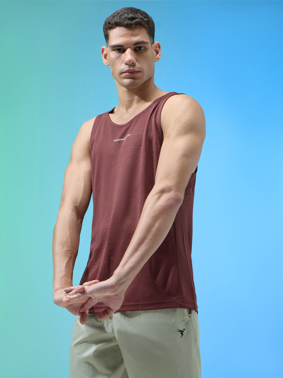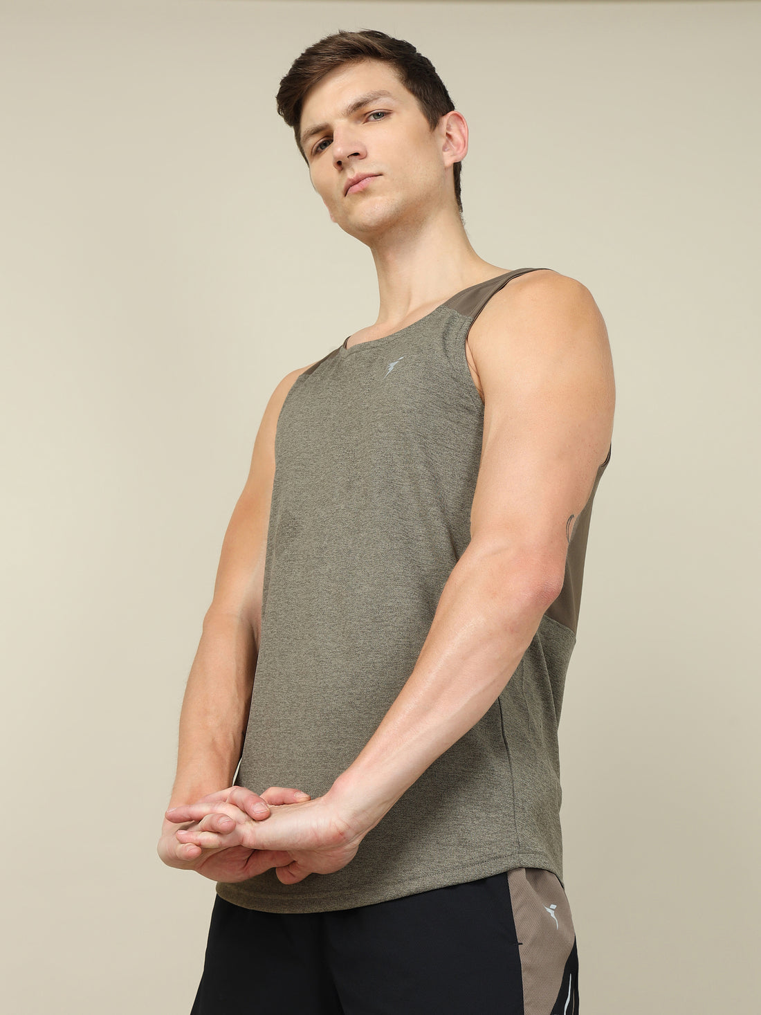 Men Melange Slim Fit Round Neck Sports Innerwear Vest with DOUBLE COOL