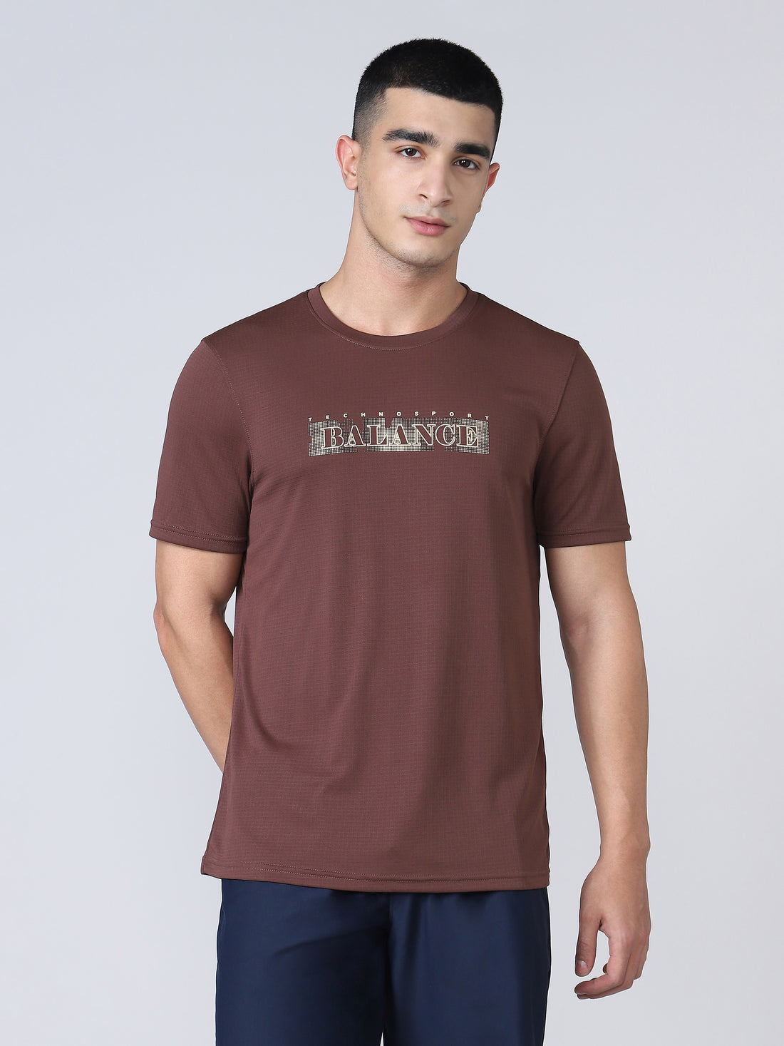 Men Printed Regular Fit Crew Neck T-shirt with TECHNO COOL+