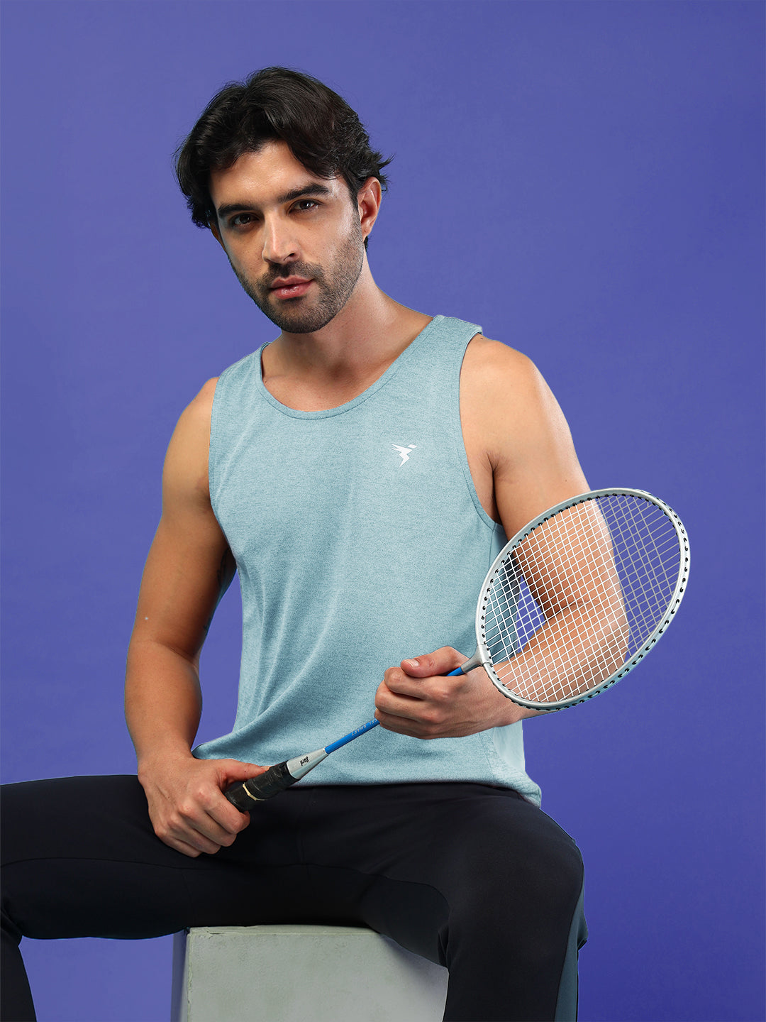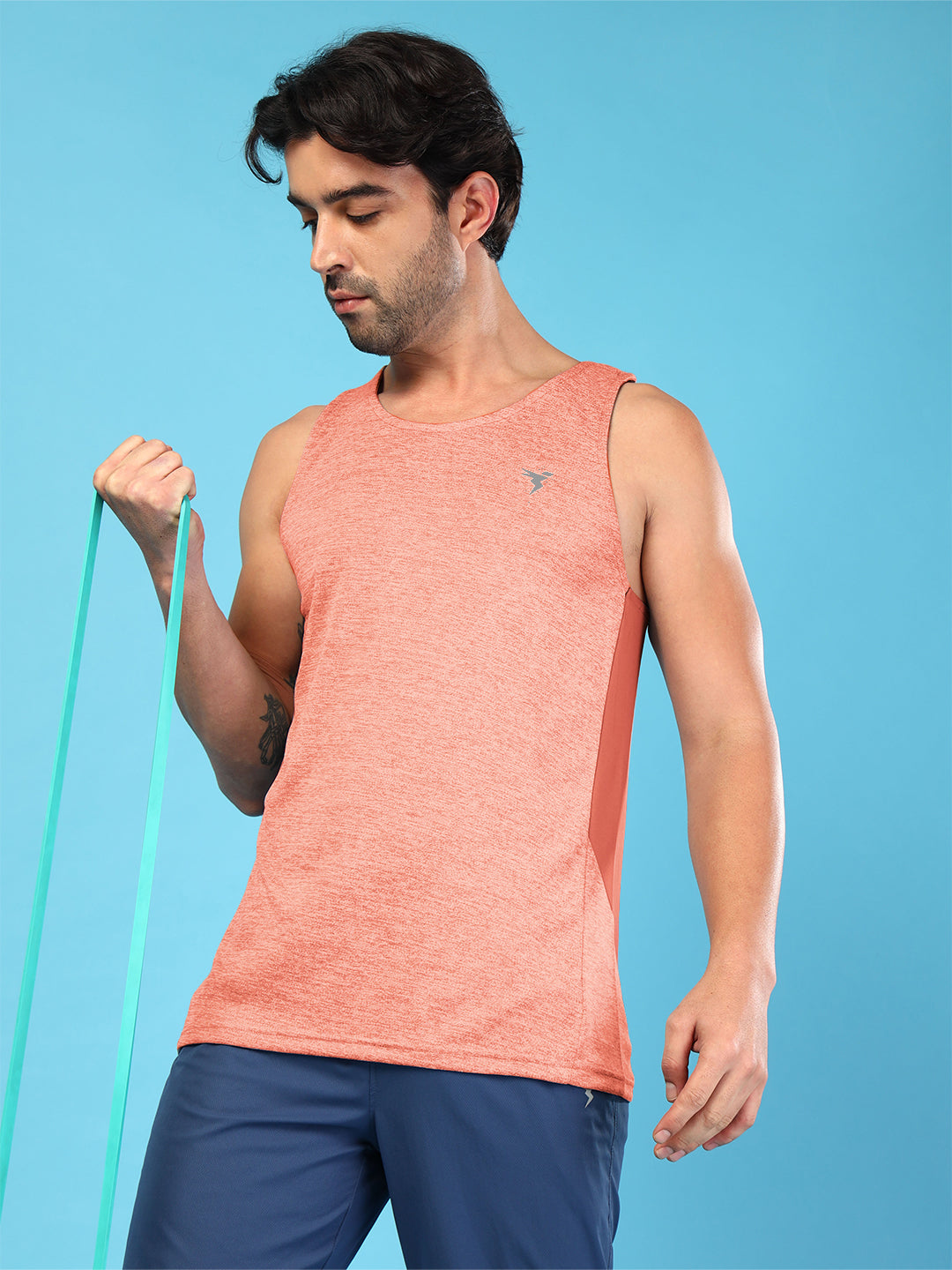 Men Melange Slim Fit Round Neck Sports Innerwear Vest with DOUBLE COOL