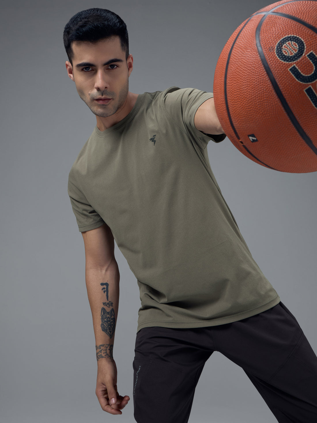 Men Solid Slim Fit Crew Neck T-shirt with TECHNO COOL+