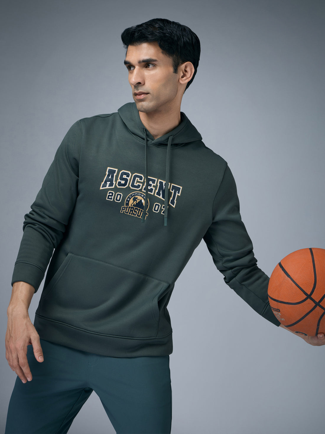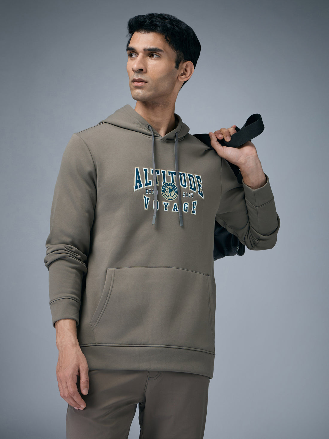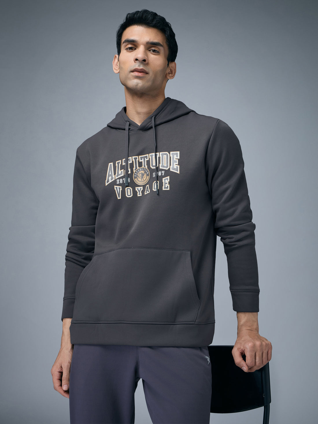 Men Printed Slim Fit Hooded Sweatshirt with TECHNOWARM+