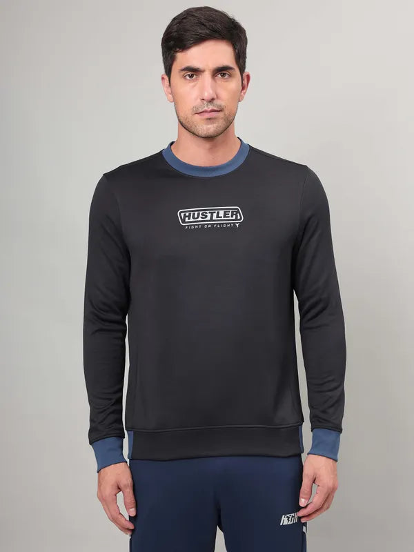 Men Printed Slim Fit Crew Neck Sweatshirt with ELASTO PLUS