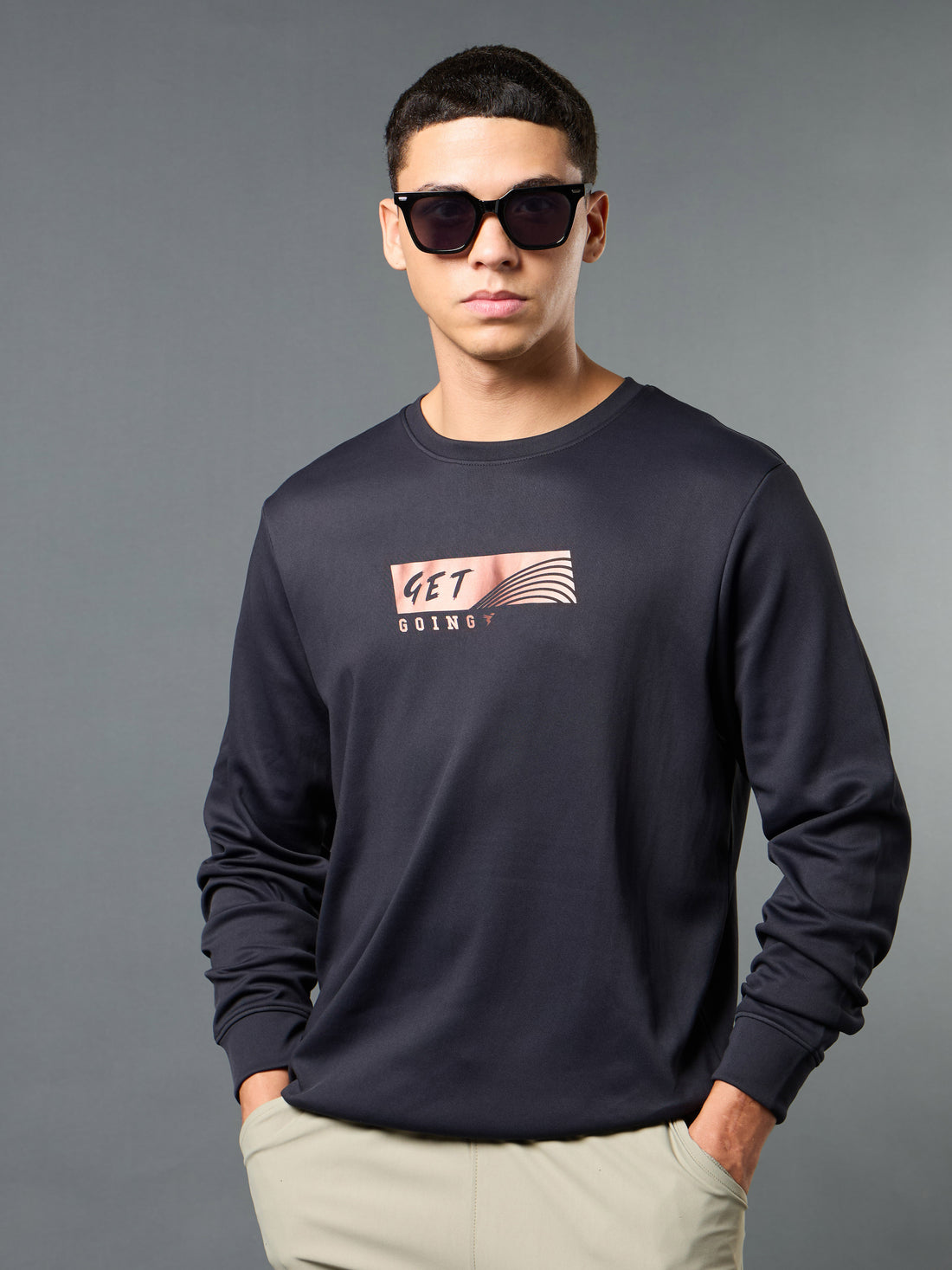 Men Printed Slim Fit Crew Neck Sweatshirt with ELASTO PLUS