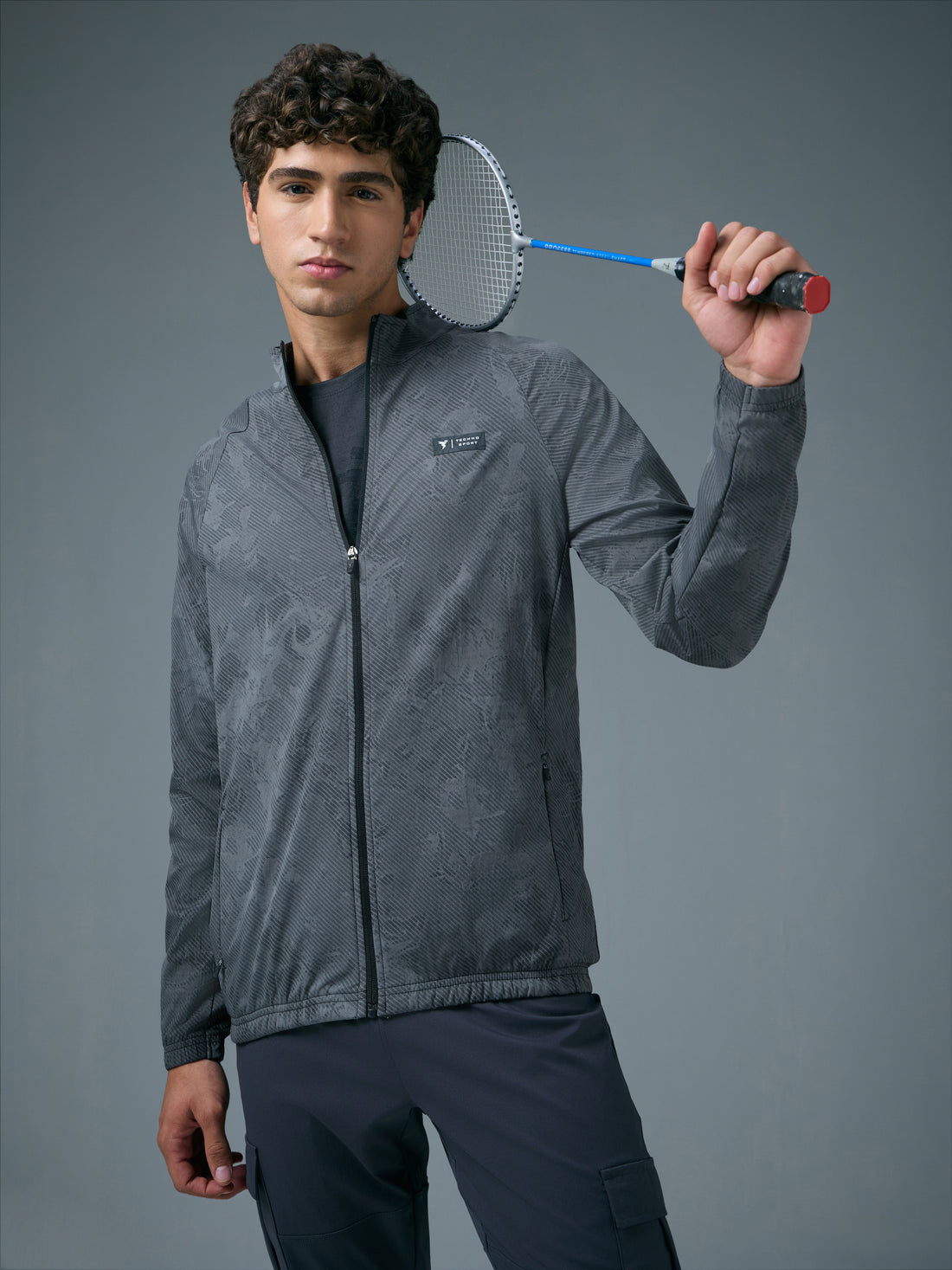 Men Printed Slim Fit Mock Neck Jacket with TS FLEXI