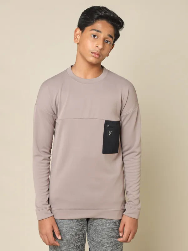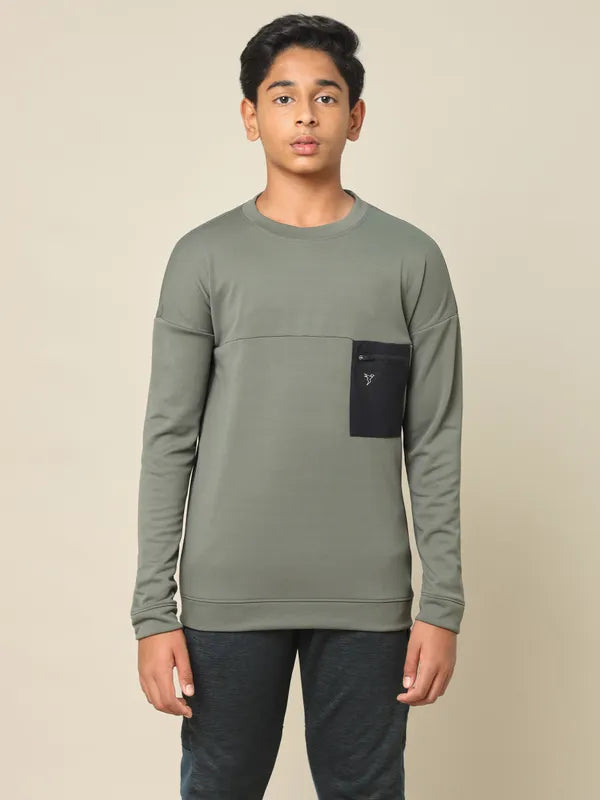 Boys Solid Slim Fit Crew Neck Pullover with TECHNO DRY