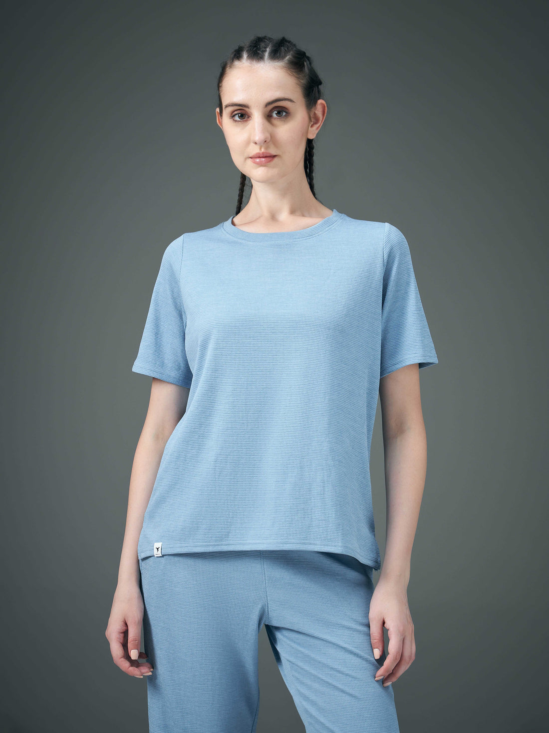 Women Cubic Melange Relaxed Fit Round Neck T-shirt with DOUBLE COOL