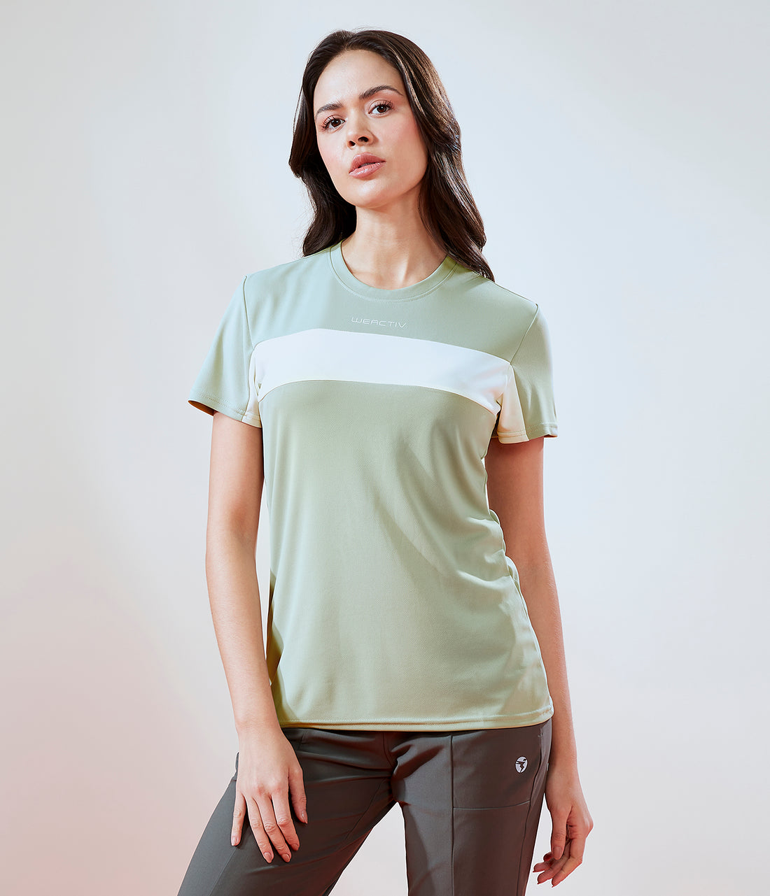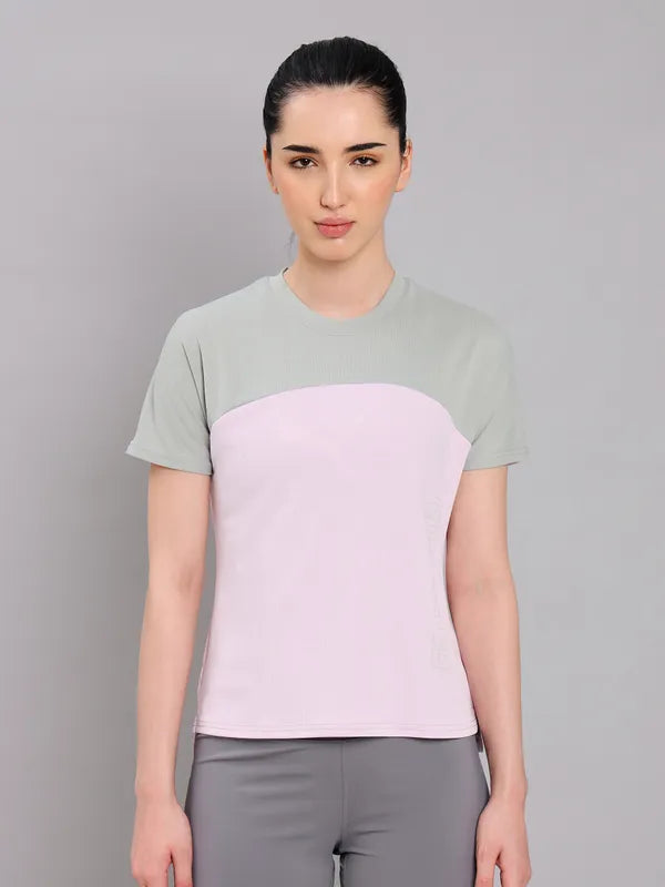 Women Colorblock Slim Fit Crew Neck T-shirt with TECHNO COOL+