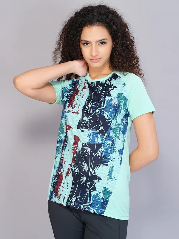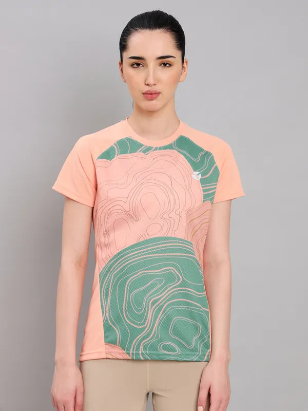 Women Printed Regular Fit Round Neck Sports Tee with TECHNOCOOL+