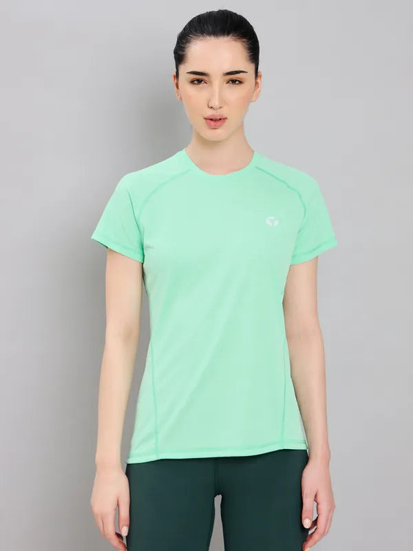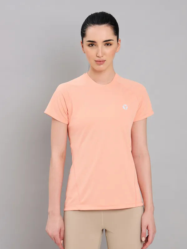 Women Solid Slim Fit Round Neck T-shirt with TECHNO COOL