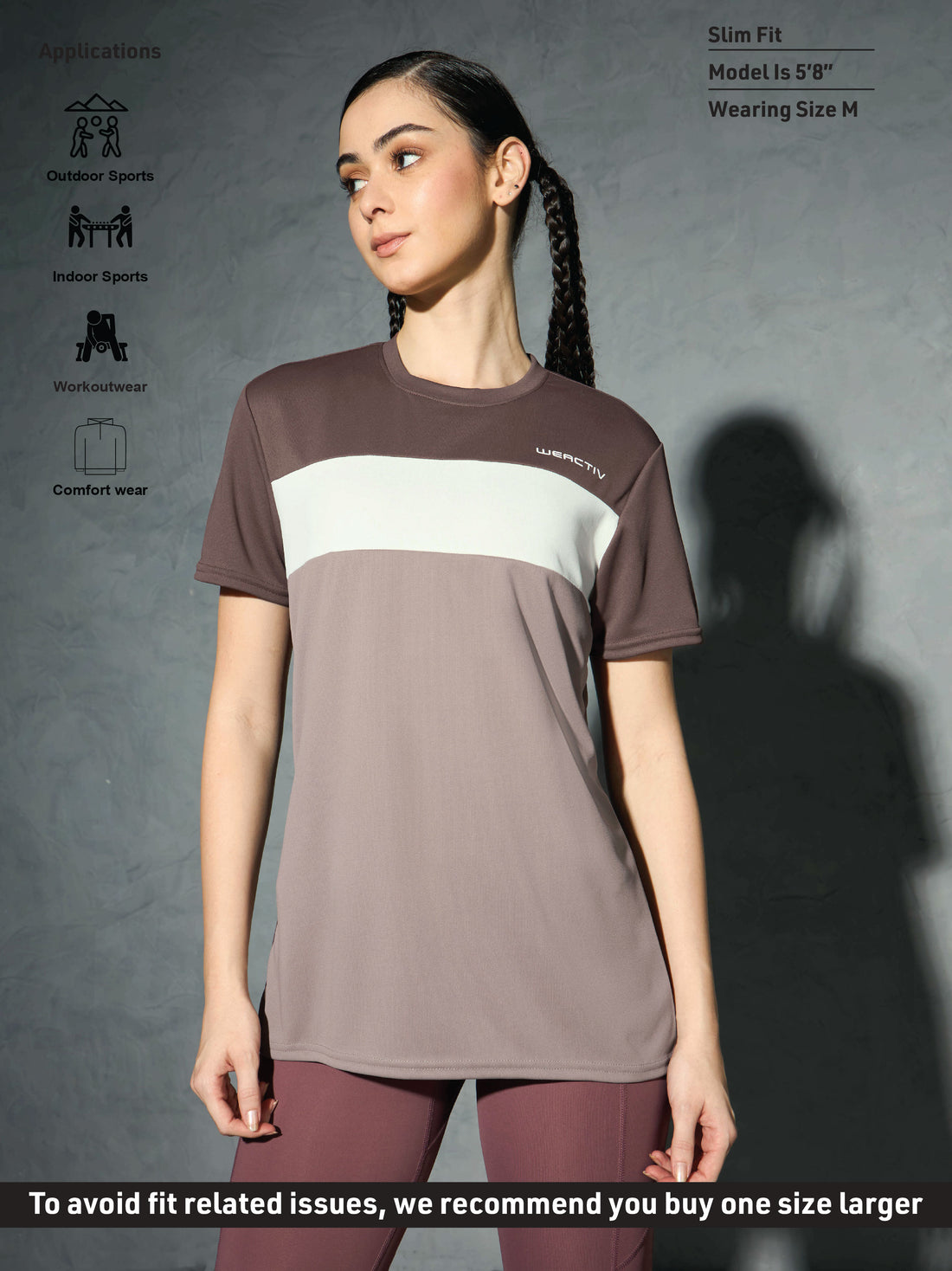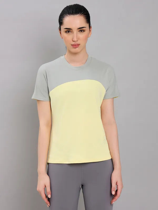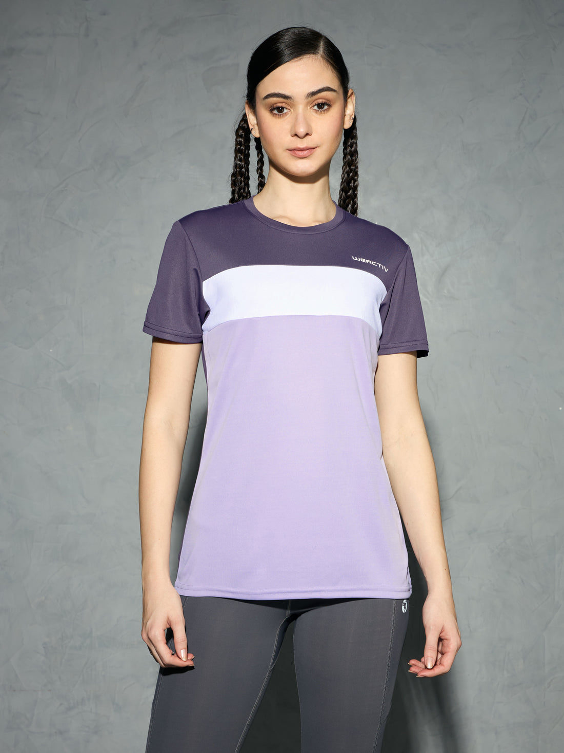 Women Colorblock Slim Fit Crew Neck T-shirt with TECHNO COOL+