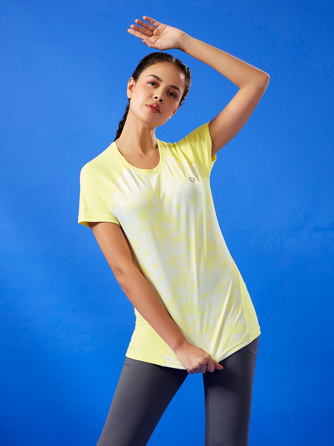 Women Printed Slim Fit Round Neck Sports Tee for Yoga & Fitness with TECHNOCOOL+