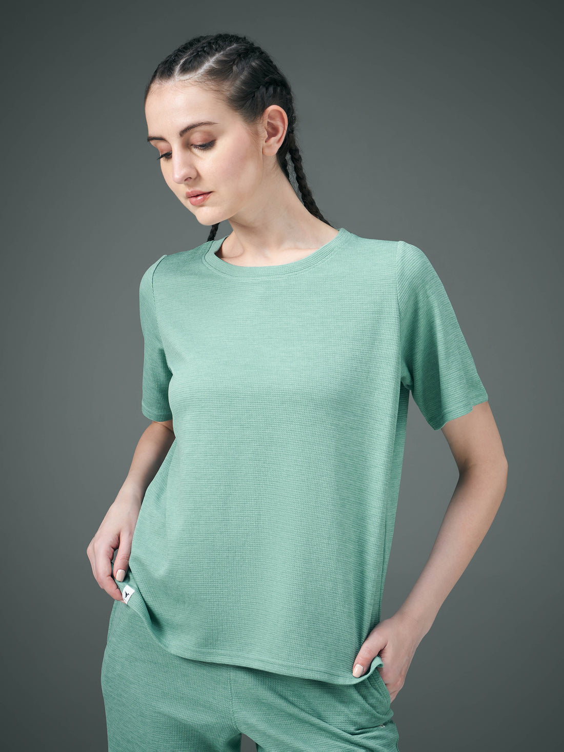 Women Cubic Melange Relaxed Fit Round Neck T-shirt with DOUBLE COOL
