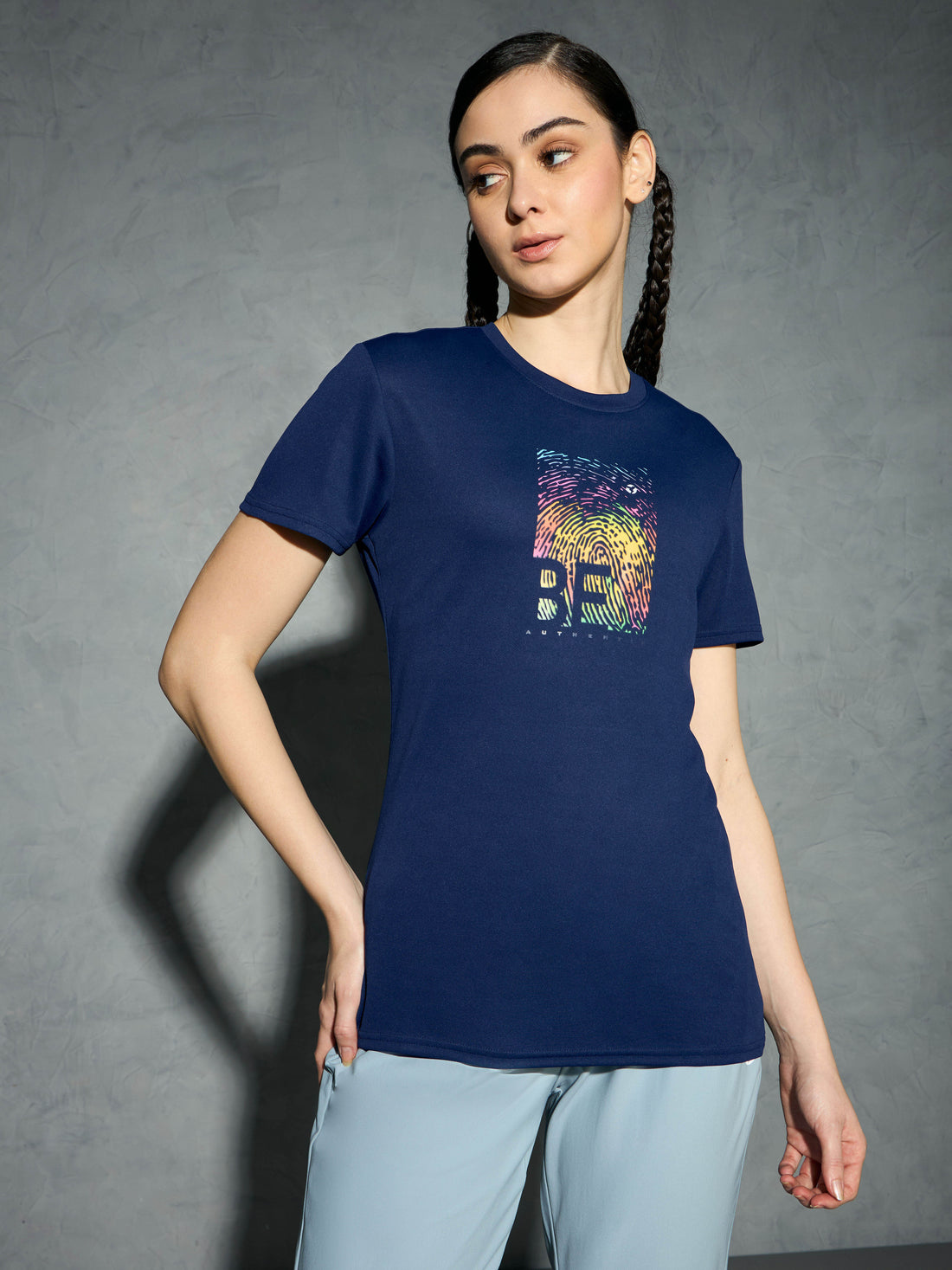 Women Printed Slim Fit Round Neck T-shirt with TECHNOCOOL+