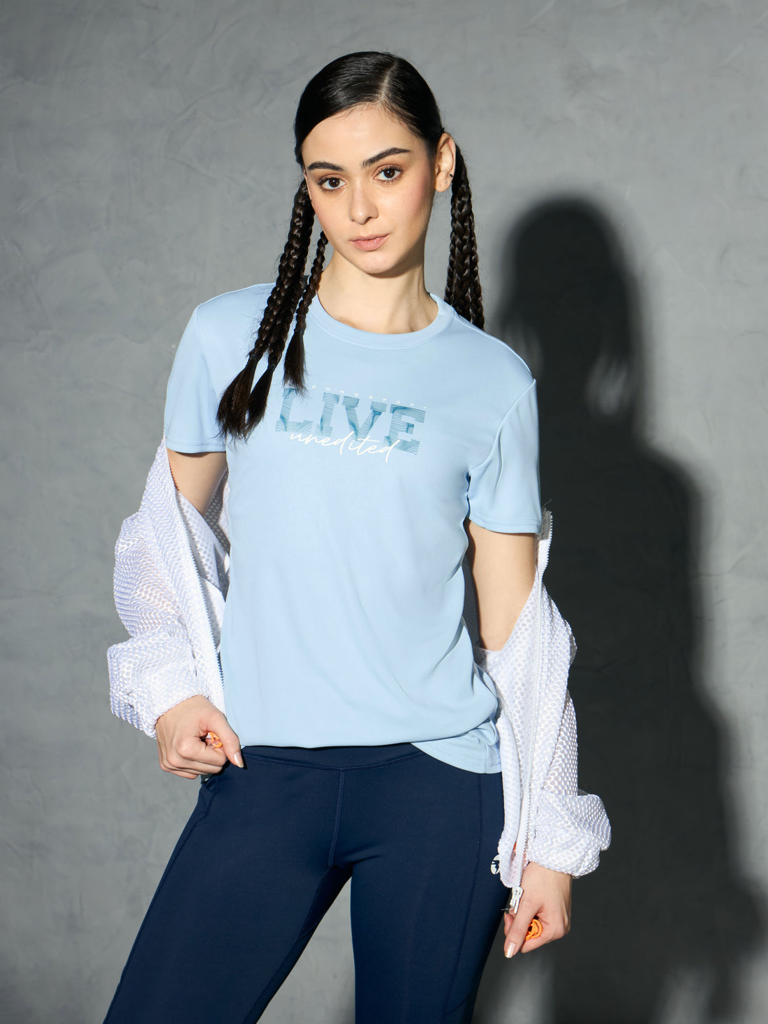 Women Typography Print Regular Fit Round Neck Sports Tee with TECHNOCOOL+