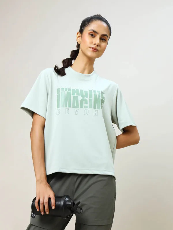 Women Printed Boxy Fit Crew Neck T-shirt with TECHNO COOL+