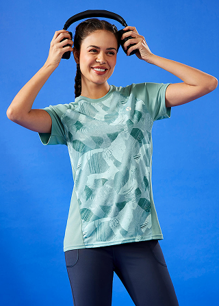 Women Printed Slim Fit Round Neck Sports Tee for Yoga & Fitness with TECHNOCOOL+
