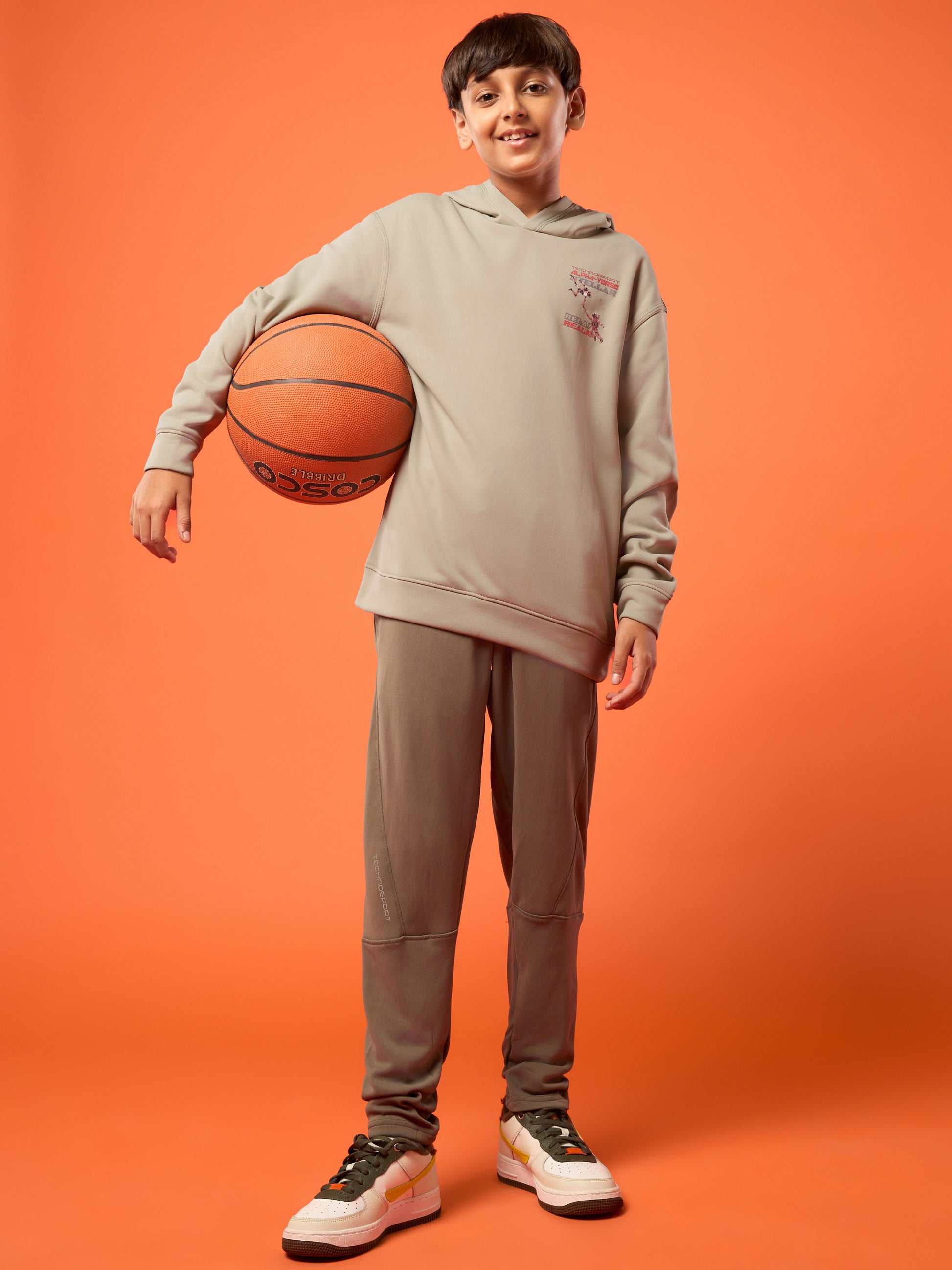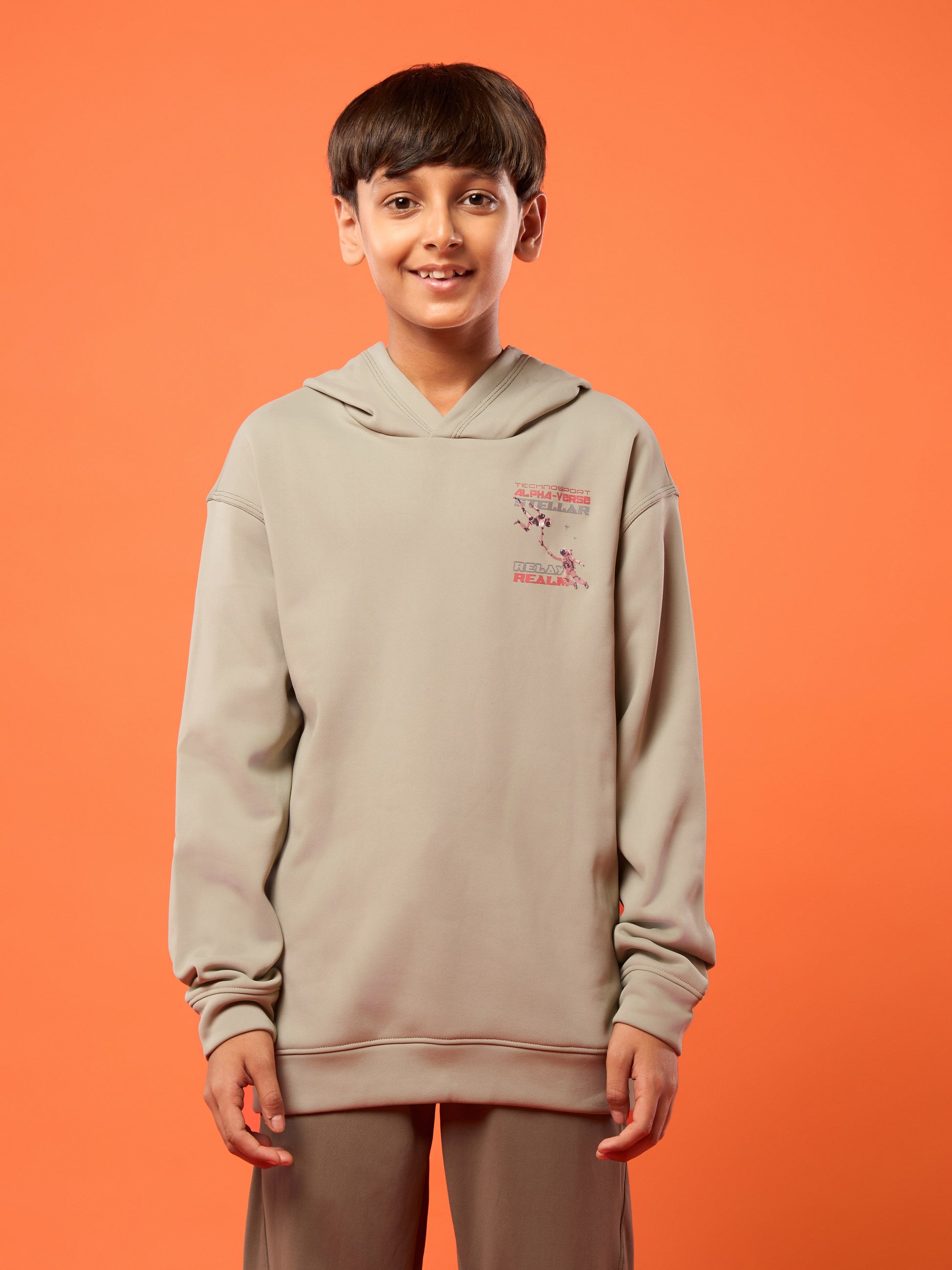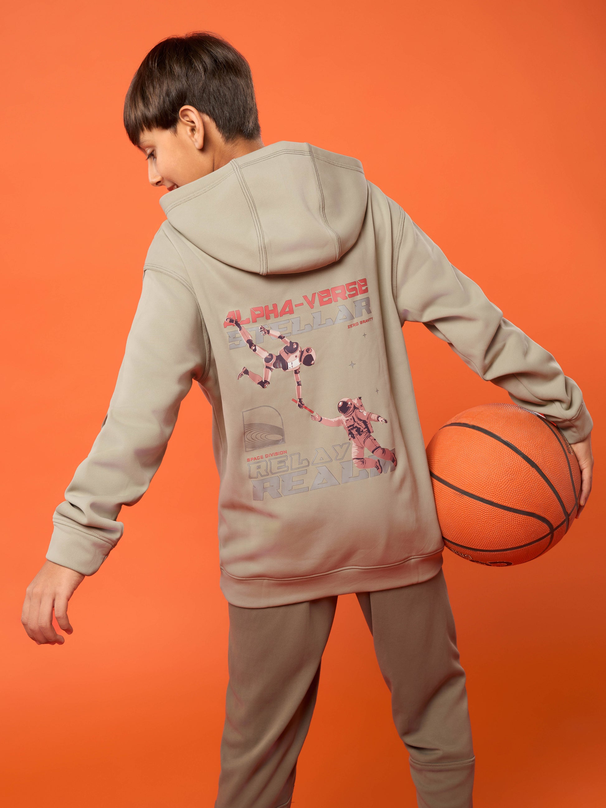 Offer Valid on a Minimum Cart Value of ₹999Boys Back Printed Slim Fit Hooded Sports Sweatshirt with TECHNO WARM+